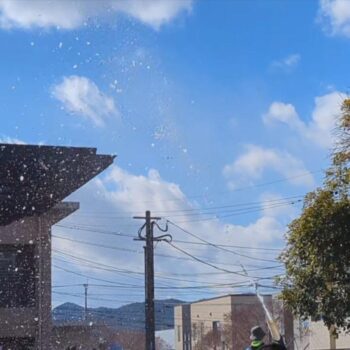 このフェスの最大の目玉は、雪降りタイム!!滅多に雪が降らない日向市に、人工的に雪を降らせて子どもたちに雪だるま等を作って楽しんでもらおうというイベントです!遠くから見ていましたが、とても迫力がありキレイで、子ども達の笑顔と楽しそうな笑い声でこちらまで幸せな気持ちになりました!
